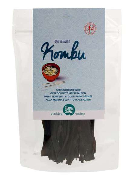 Reich an Mineralien eignet sich Kombu aus Japan von Terrasana u.A. für Bäder und Kompressen. Hilfreich ist die Anwendung als Auflage bei schmerzendem Zahnfleisch, entzündlichen und allergischen Reaktionen auf der Haut. In Japan kommt ihr Umami-Geschmack in einer Kombu-Shiitake-Boullion zur Geltung.