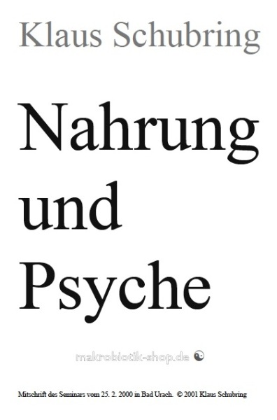 Protokoll des Seminars "Nahrung und Psyche", veranstaltet von Naturkost Martin Korzer in Bad Urach.
